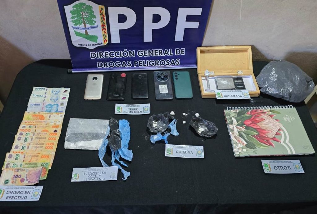 Las requisas domiciliarias fueron concretadas el miércoles último, donde detuvieron a la mujer de 39 años y se incautaron 13 envoltorios de polietileno con clorhidrato de cocaína, aptos para la preparación de 49 dosis de dicha sustancia, siete teléfonos celulares, tres balanzas digitales con restos de cocaína, poco más de 198.000 pesos, anotaciones, más elementos de estiramiento y acondicionamiento.