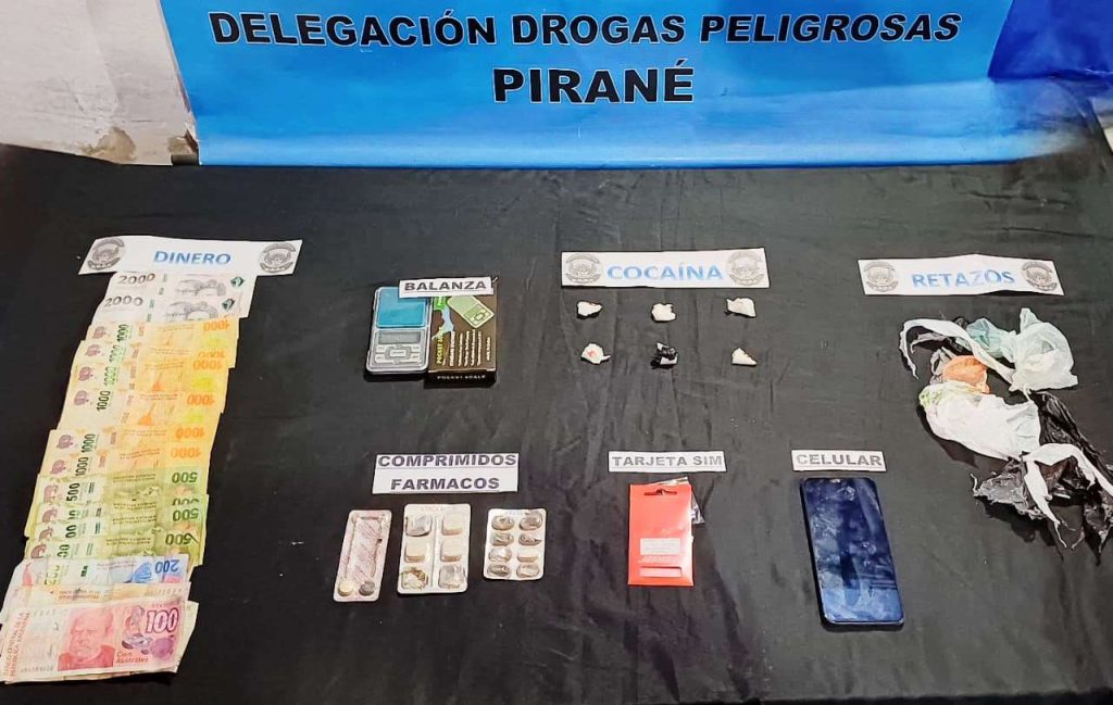 Efectivos de la Delegación de Drogas Peligrosas Pirané detuvieron a un dealer y durante el allanamiento de su casa secuestraron cocaína fraccionada, balanza, dinero en efectivo, una moto Honda Wave y otros elementos de interés en la causa.