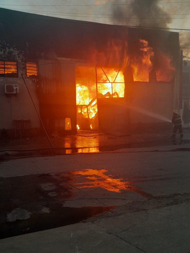 Efectivos del Destacamento de Bomberos Clorinda, extinguieron el incendio de un depósito; con el apoyo de policías de otras dependencias, evacuaron preventivamente a vecinos y evitaron que el fuego avance a los inmuebles contiguos.