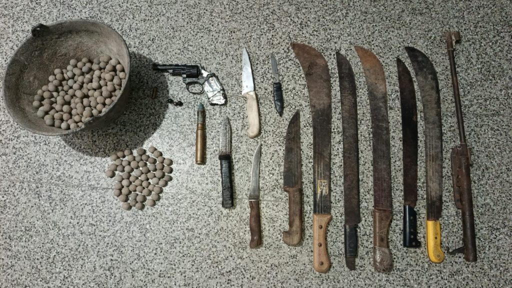 Durante esa actividad se logró la detención de tres hombres, la retención de dos menores y el secuestro de varios machetes, cuchillos, palos y un revólver calibre 22, todos de interés en las causas judiciales.