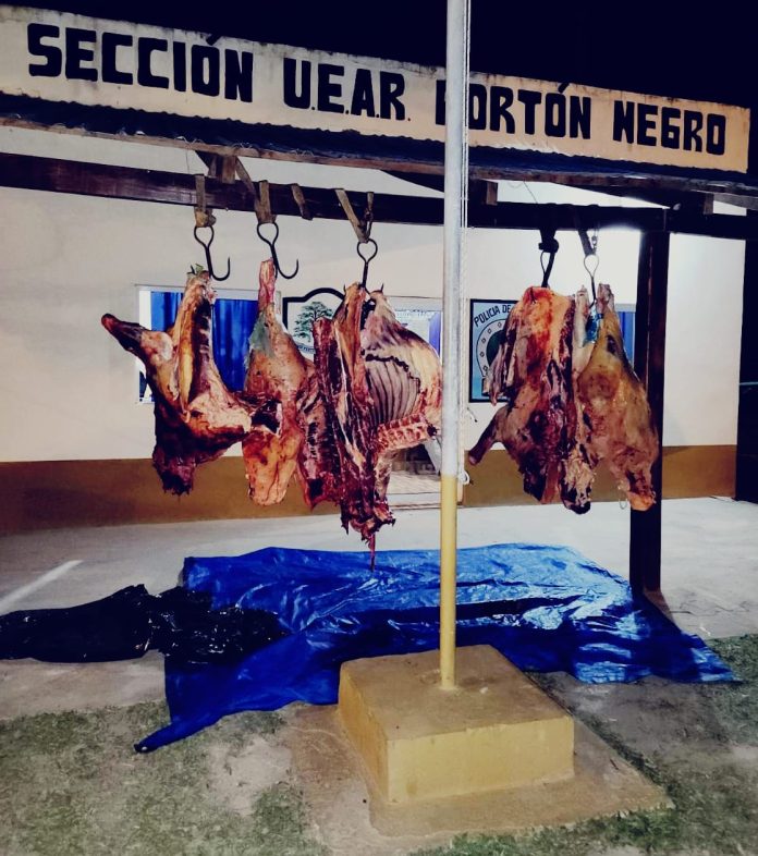 Durante ese trabajo, demoraron a dos hombres de 44 y 22 años que circulaban en un automóvil Fiat Palio y trasladaban productos cárnicos, cuya propiedad no pudieron justificar.
