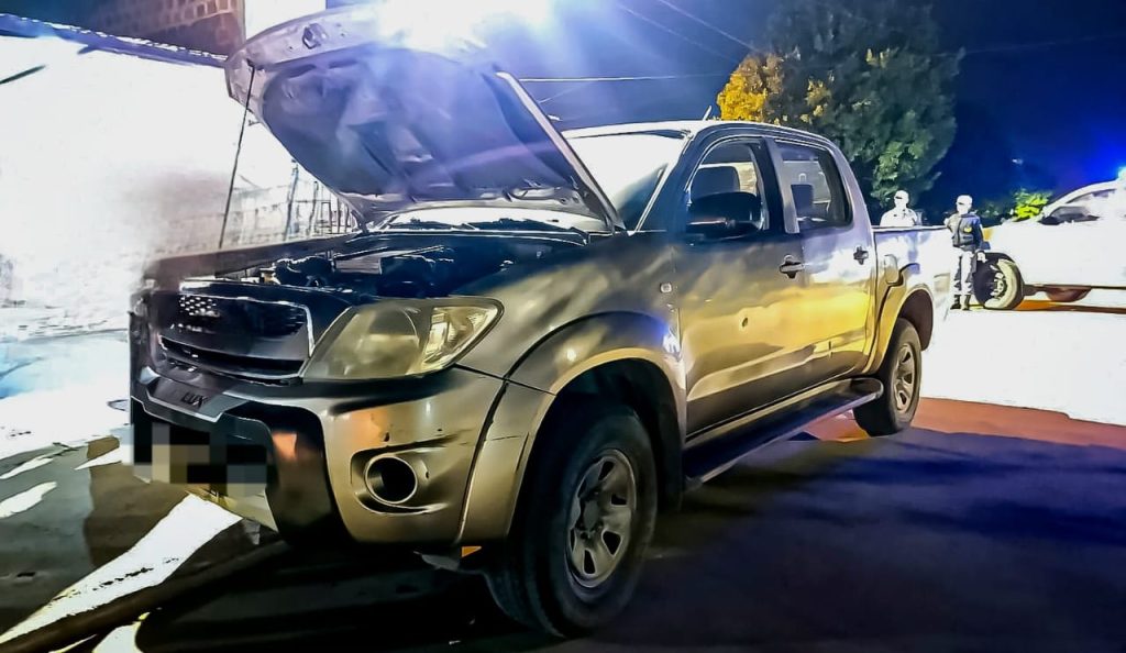 Durante esa tarea preventiva, observaron una camioneta Toyota Hilux, al mando de un hombre, que llamó la atención de los servidores públicos por las características del vehículo, iniciándose un seguimiento discreto.