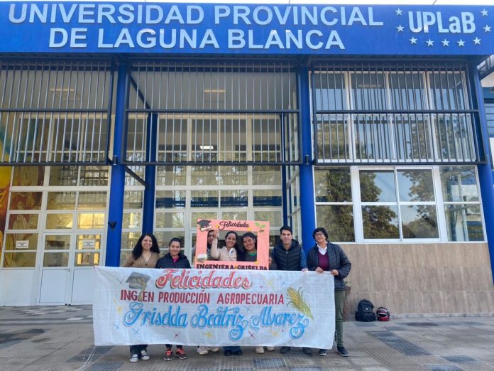 Este viernes 19, en la Universidad Provincial de Laguna Blanca (UPLaB), celebraron el egreso de una nueva profesional. Se trata de Griselda Álvarez, ingeniera en Producción Agropecuaria, oriunda de El Potrillo, localidad del Departamento Ramón Lista, en el extremo oeste de la provincia de Formosa.