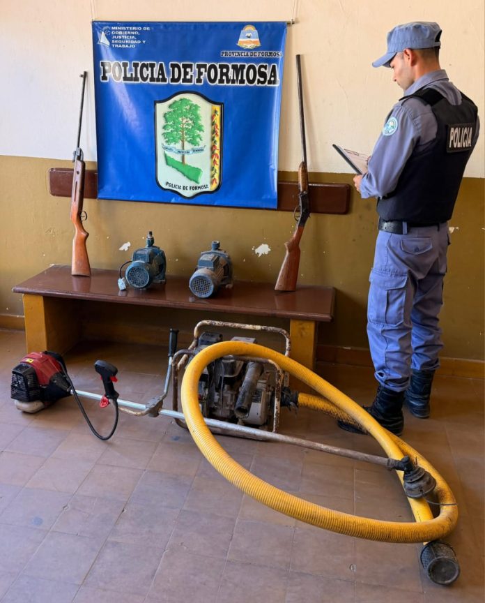 En el lugar se secuestraron una escopeta, un rifle de aire comprimido modificado para cartuchos calibre 22, una motobomba gasolera de 6,5 HP y dos bombas periféricas, estableciéndose que una de ellas fue sustraída días atrás.