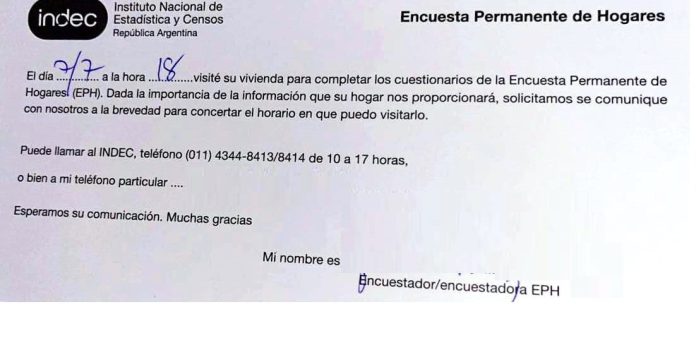 La identidad de quienes encuestan se puede verificar a través del sistema de consultas disponible en el sitio web del INDEC: https://www.indec.gob.ar/…/Institucional….