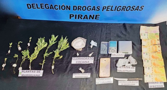 Además, se secuestró marihuana apta para 91 dosis, más 10 de cocaína, balanzas, dinero en efectivo y otros elementos de interés
