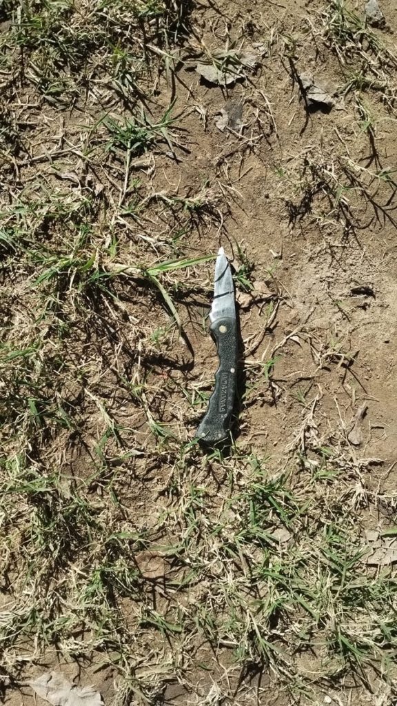 Durante la aprehensión, se constató que la mujer llevaba entre sus prendas de vestir un cuchillo y envoltorios con marihuana, razón por la cual tomó intervención el personal de la Dirección de Drogas Peligrosas y se inició otra causa judicial por separado.