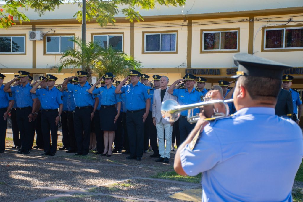 El acto fue presidido por el jefe de Policía Comisario General Juan Moisés Villagra, acompañado de la Subsecretaria de Justicia Comisario Mayor Dra. María Higinia Sena, integrantes de la plana mayor policial, oficiales superiores, jefes y subalternos.
