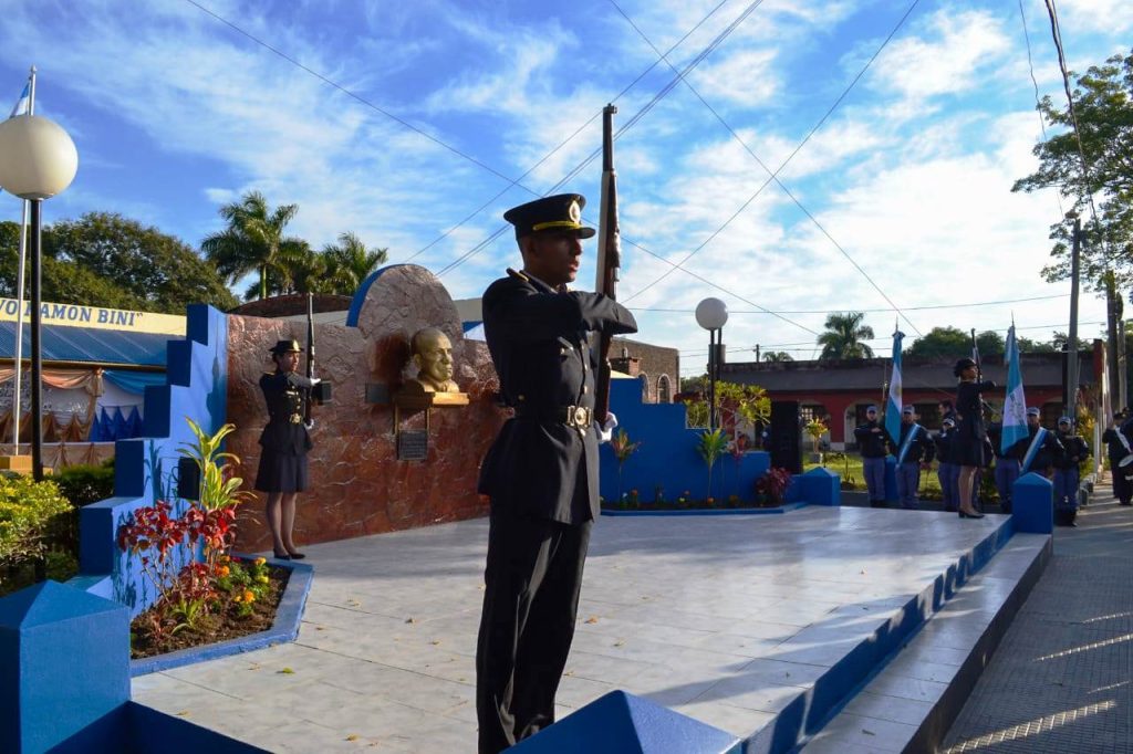El diácono permanente de la Pastoral Policial, Roberto González, ofreció una breve invocación religiosa durante el acto, seguido del depósito de ofrendas florales frente al monolito que perpetúa la memoria del oficial Bini, más un respetuoso minuto de silencio en homenaje a un hombre que ofrendó su vida en cumplimiento del deber, estando posteriormente las palabras alusivas a cargo del Ministro de Gobierno.