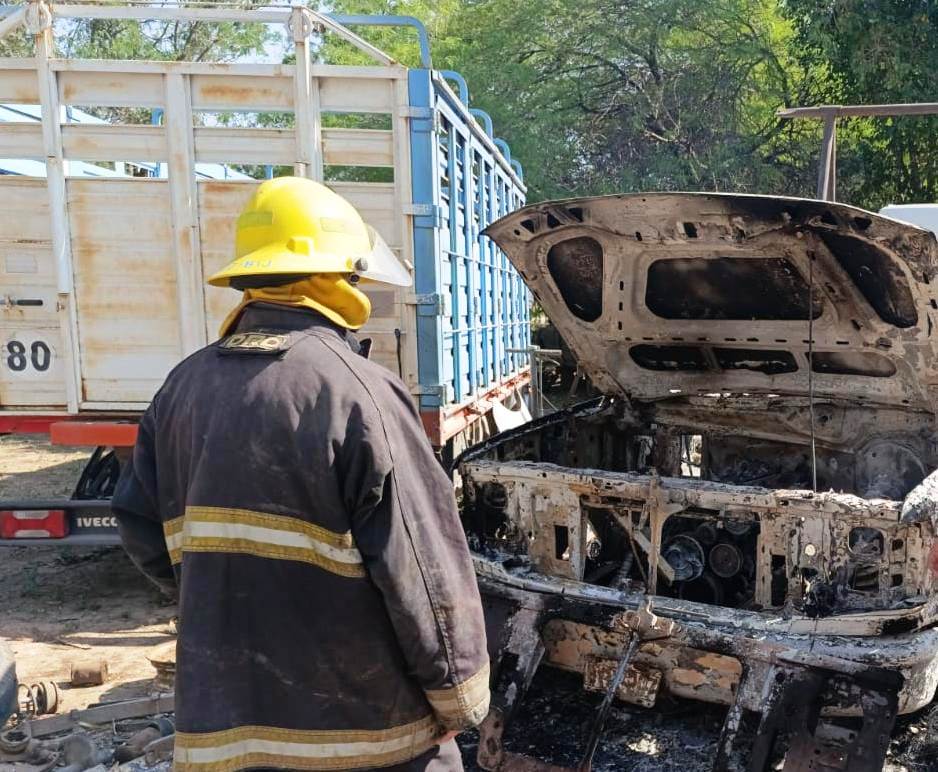 Los integrantes del Cuerpo de Bomberos extinguieron el incendio en un taller de autos del barrio Palo Santo de Ingeniero Juárez, que terminó con importantes daños en una camioneta Ford F-100 y una habitación.