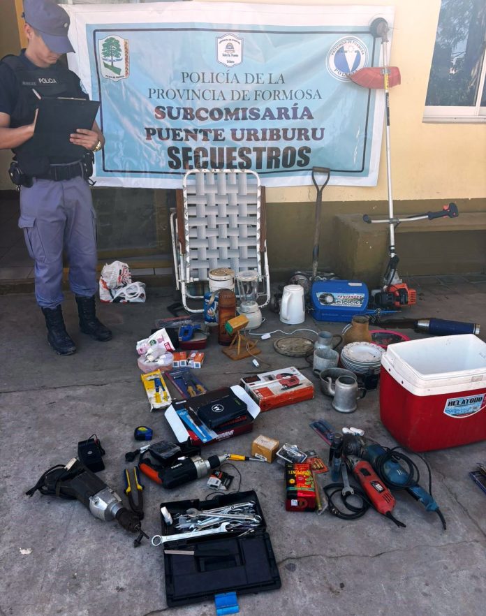 Efectivos de la Subcomisaría Puente Uriburu recuperaron herramientas, una motoguadaña, amoladora, un taladro, engrampadora, remachadora, cubiertos y reposeras, entre otros bienes que interesan en una causa judicial por “Robo”.