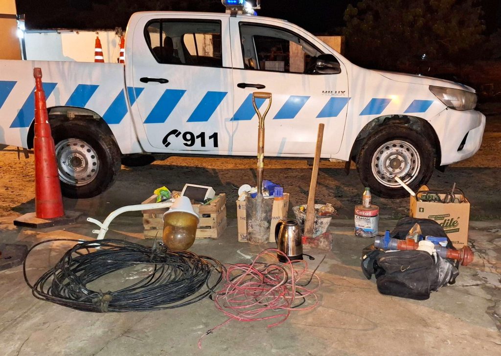Durante la medida judicial, secuestraron varias lámparas, comandos eléctricos, corta hierros, reflectores, mangueras, jarras eléctricas, entre otros objetos, similares a los denunciados como sustraídos.