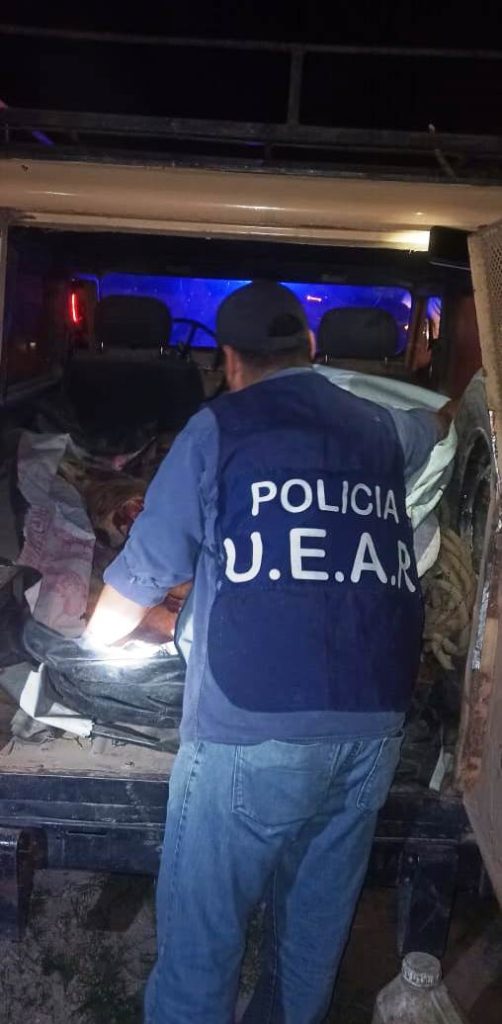 Efectivos de la Jefatura de la Unidad Especial de Asuntos Rurales (UEAR) detuvieron a un sujeto que se desplazaba en un Jeep y transportaba en la cajuela del vehículo productos cárnicos, sin respetar las condiciones de salubridad, ni la cadena de frío.