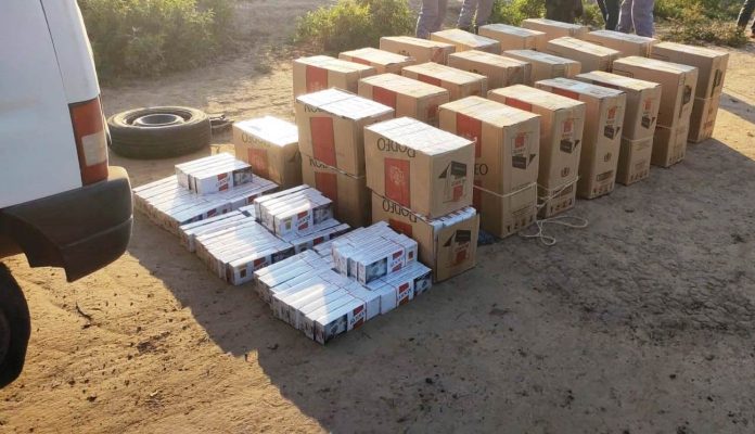 Durante esa actividad, detuvieron a los conductores del Chevrolet Aveo y el Peugeot Partner que ingresaron a un establecimiento ganadero, ubicado en la Colonia El Recodo y allí constataron que trasladaban gruesas de cigarrillos.