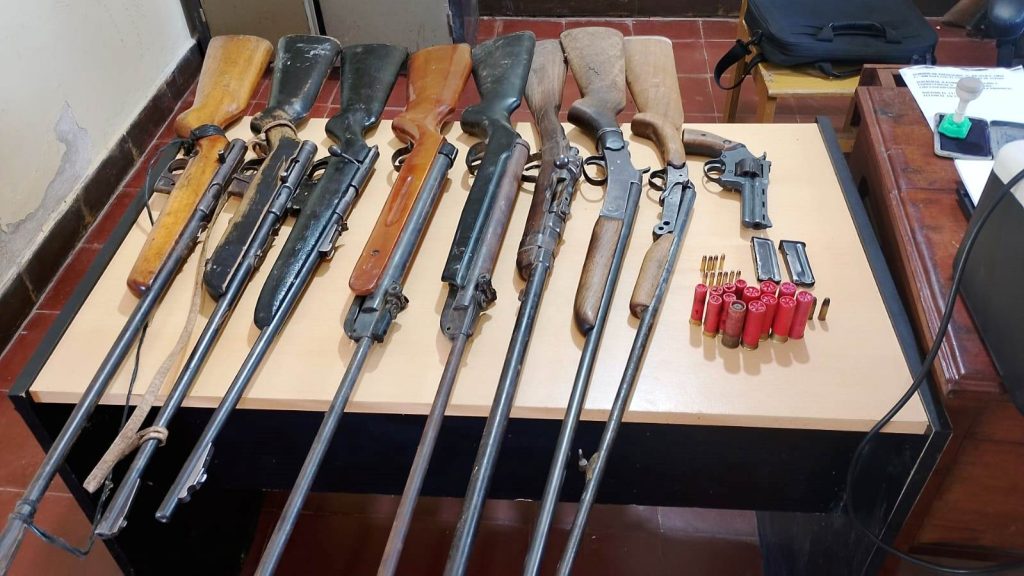 Efectivos del Destacamento Cabo Primero Noroña secuestraron tres escopetas, tres rifles, un revólver, dos aires comprimidos y varios cartuchos de distintos calibres, tras un allanamiento en la Colonia El Poí.