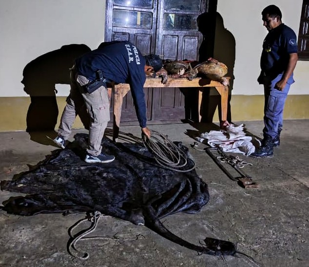 Integrantes de la Unidad Especial de Asuntos Rurales (UEAR), Sección La Frontera, secuestraron producto cárnico y elementos utilizados durante una faena clandestina, en el marco de una causa judicial por “Abigeato”.