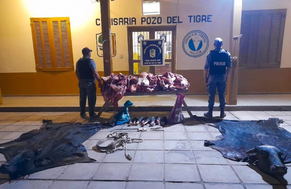 Efectivos de la Comisaría Pozo del Tigre secuestraron carne por no respetar las condiciones de salubridad durante el transporte y demoraron a una mujer y un hombre que circulaban en una Volkswagen Amarok.