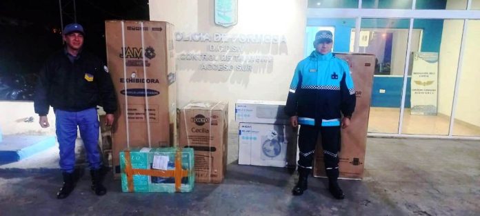 Durante la verificación del vehículo, se constató que trasladaba heladeras, aire acondicionado, lavarropas, exhibidora, Smart Tv, entre otros productos de procedencia extranjera y sin aval aduanero.