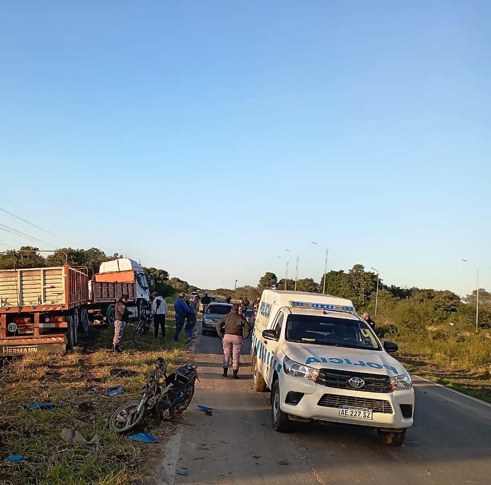 Allí se estableció que el camión con acoplado circulaba por la mencionada ruta en sentido norte – sur y se produjo la colisión con el motociclista, que se desplazaba en sentido contrario.