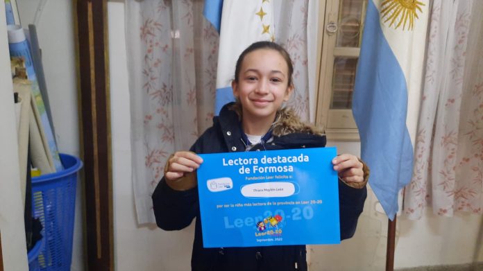 La alumna del “Colegio Santa Catalina Laboure” de la ciudad de Clorinda, Thiara Maylén León, de 9 años, quien cursa el cuarto grado, fue premiada recientemente como la más lectora de la provincia de Formosa 2020, al ganar el concurso de la Fundación Leer.